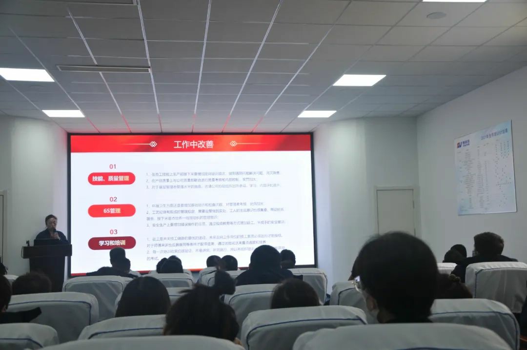 生產(chǎn)部部長(zhǎng)從“去年工作回顧”“取得工作成果”“工作不足改善”“新年工作計(jì)劃”四個(gè)方面出發(fā),對(duì)2021的全年工作情況進(jìn)行了總結(jié)概述,匯報(bào)了本年度生產(chǎn)任務(wù)的完成情況,重點(diǎn)強(qiáng)調(diào)了安全生產(chǎn)管理,提出要時(shí)刻做到“警鐘長(zhǎng)鳴”,認(rèn)真執(zhí)行安全操作管理規(guī)定,落實(shí)安全培訓(xùn),讓安全意識(shí)深入人心;展示了2021年各方面工作取得的成果,同時(shí)指出了工作中存在的不足及改善措施,并提出了相關(guān)建議,制定了2022年的工作目標(biāo)。