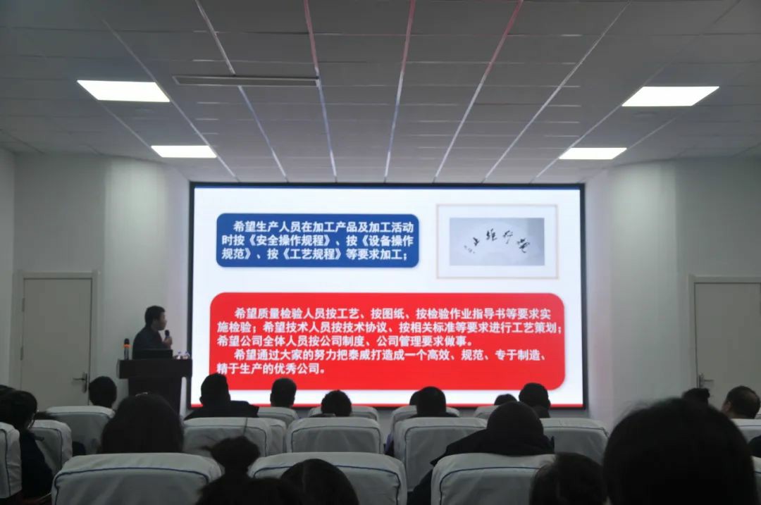 質(zhì)量部部長(zhǎng)從“年終工作總結(jié)”“質(zhì)量部統(tǒng)計(jì)分析”“明年工作計(jì)劃”三個(gè)模塊對(duì)質(zhì)量部的全年工作進(jìn)行總結(jié),對(duì)團(tuán)隊(duì)工作、計(jì)量管理、體系審核、外協(xié)供應(yīng)商管理等方面的工作進(jìn)行了簡(jiǎn)要概括。針對(duì)產(chǎn)品質(zhì)量數(shù)據(jù),為2022年的產(chǎn)品質(zhì)量控制提出了建設(shè)性建議。借用“將月就日”和“止距行規(guī)”兩詞,與大家共勉,希望各部門按照相關(guān)文件和流程要求嚴(yán)格執(zhí)行各項(xiàng)工作,通過(guò)努力把泰威打造成一個(gè)高效、規(guī)范、專注制造、精于生產(chǎn)的優(yōu)秀公司。