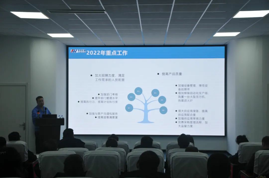 總經(jīng)理對(duì)2021年公司在人員配置、市場(chǎng)開(kāi)拓、內(nèi)部管理、資源配置、人才培養(yǎng)、辦公環(huán)境、福利設(shè)施的改善、企業(yè)文化的加強(qiáng)等方面取得的主要業(yè)績(jī)進(jìn)行了肯定,在肯定的同時(shí)也指出了在部門溝通、日常管理、人員配置、產(chǎn)品質(zhì)量、設(shè)備管理、供應(yīng)商管理等方面存在的問(wèn)題,針對(duì)問(wèn)題提出了相應(yīng)的建議和要求,部署了2022年的工作任務(wù)和工作重點(diǎn),指出2022年要加快落實(shí)系統(tǒng)的管理體系,加大管理力度,強(qiáng)化各部門職能管理,明確各崗位職責(zé),切實(shí)做到工作有計(jì)劃、方案有分析、執(zhí)行有標(biāo)準(zhǔn)、結(jié)果有總結(jié)。總經(jīng)理相信在大家的共同努力下,2022年的泰威定能節(jié)節(jié)攀升,不負(fù)期待。