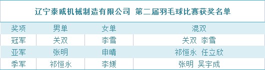 為了豐富員工的文體生活,培養(yǎng)員工的團(tuán)隊(duì)精神,增強(qiáng)員工的凝聚力,促進(jìn)員工之間的友誼,營(yíng)造一個(gè)自信、陽(yáng)光、充滿朝氣的企業(yè)氛圍,在鐵嶺市開(kāi)發(fā)區(qū)總工會(huì)的支持下,遼寧泰威機(jī)械制造有限公司于2022年4月24日在開(kāi)發(fā)區(qū)工人文化宮開(kāi)展了第二屆羽毛球比賽,本次比賽以“文明、友誼、拼搏”為宗旨,秉承著勇攀高峰的精神和參與第一、友誼第一的比賽風(fēng)尚,充分展示著拼搏進(jìn)取的精神風(fēng)貌。
